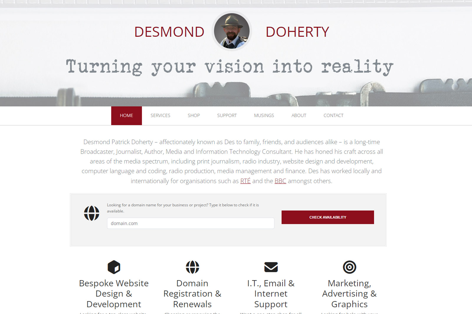 Desmond Patrick Doherty – affectionately known as Des to family, friends, and audiences alike – is a long-time Broadcaster, Journalist, Author, Media and Information Technology Consultant. He has honed his craft across all areas of the media spectrum, including print journalism, radio industry, website design and development, computer language and coding, radio production, media management and finance. Des has worked locally and internationally for organisations such as RTÉ and the BBC amongst others.
